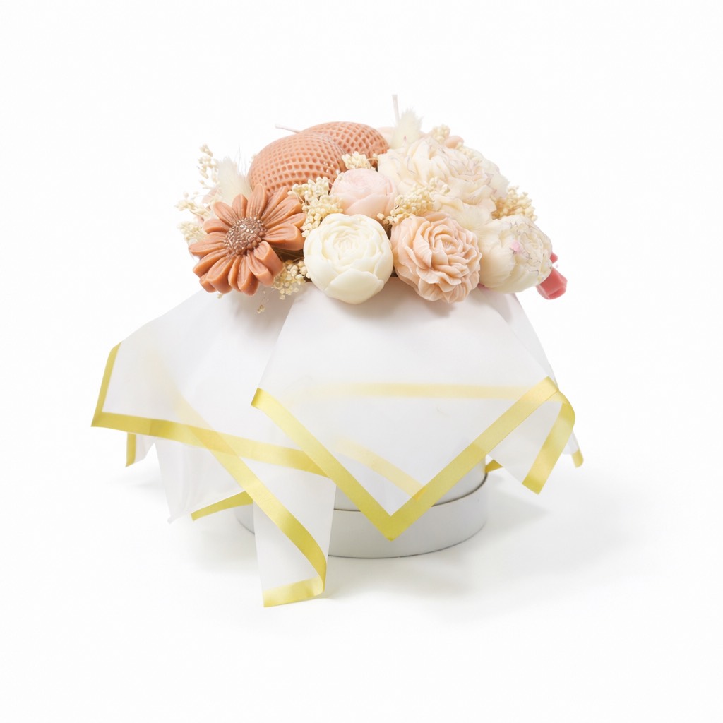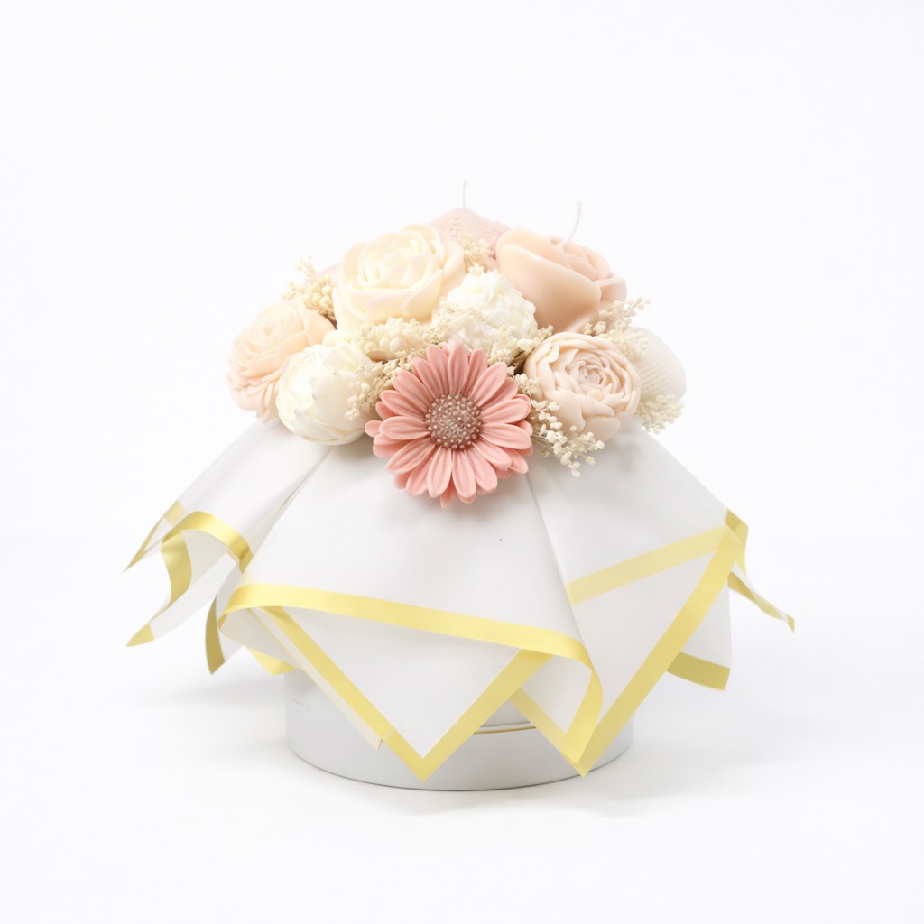 Bouquet en cire de soja végétale praline de 14 roses parfumées, Vegan, sans OGM et parfumé au cuberdon, fait main pour une décoration douce et naturelle.