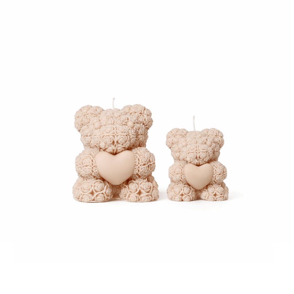 1 Ourson de Cire praline de 10 ou 13 cm en soja végétale, Vegan, sans OGM et parfumé au cuberdon, fait main pour une décoration douce et naturelle.